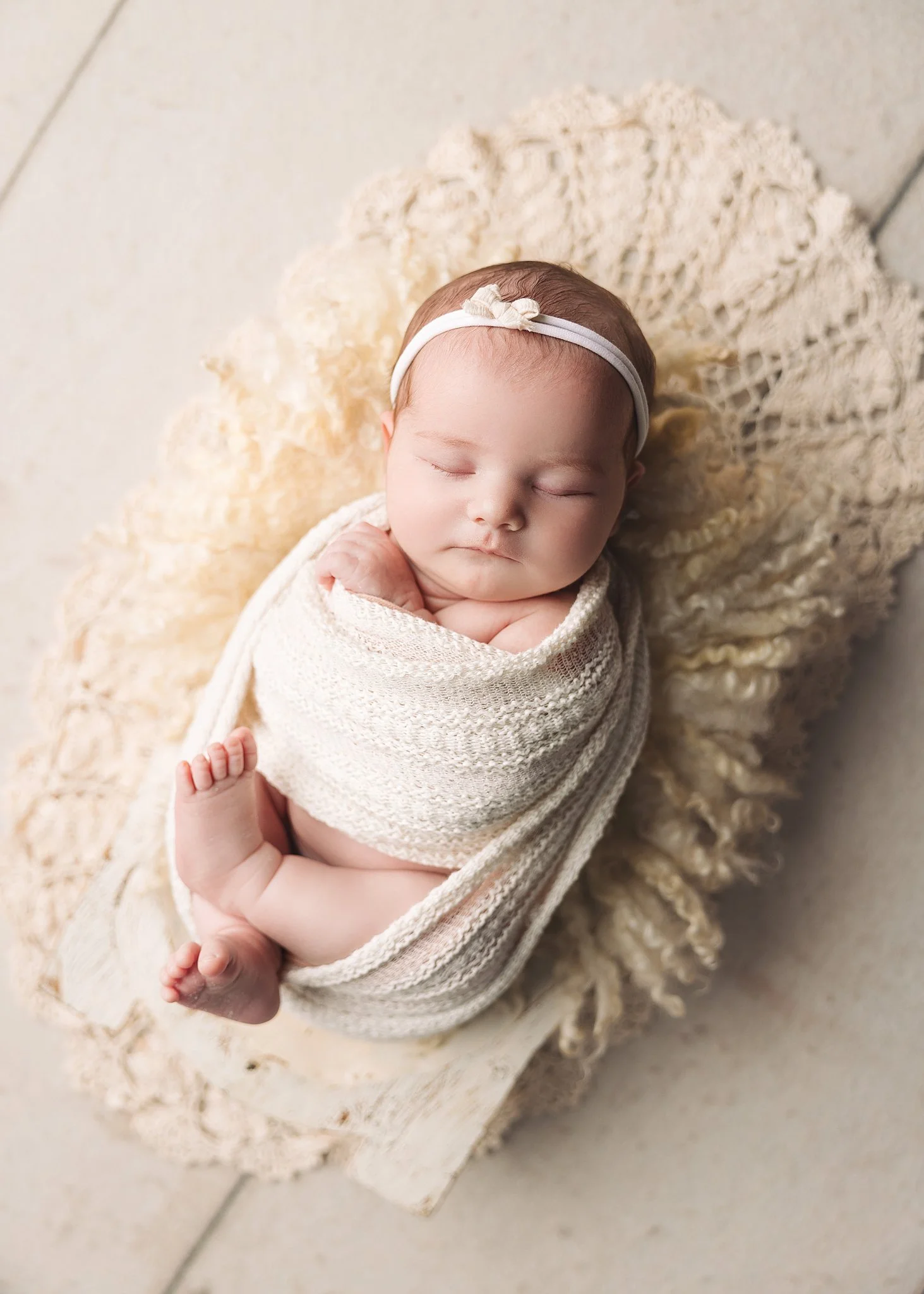 4. A Full Array of Props: From cozy wraps to adorable headbands and tiny hats, I bring a curated selection of props for you you to choose from during your in-home newborn session. These elements add a touch of charm and uniqueness to each photograph.